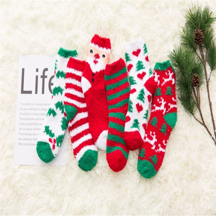 半边绒袜子女翻边珊瑚绒袜子纯色中筒加厚保暖地板睡眠袜批发订做