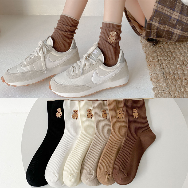 袜子女 秋冬少女可爱小熊中筒袜女士长筒透气运动袜子韩版潮ins