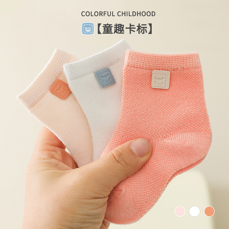 童袜春夏儿童袜子批发棉纯色吸汗透气网眼袜男女宝宝袜子厂家订做
