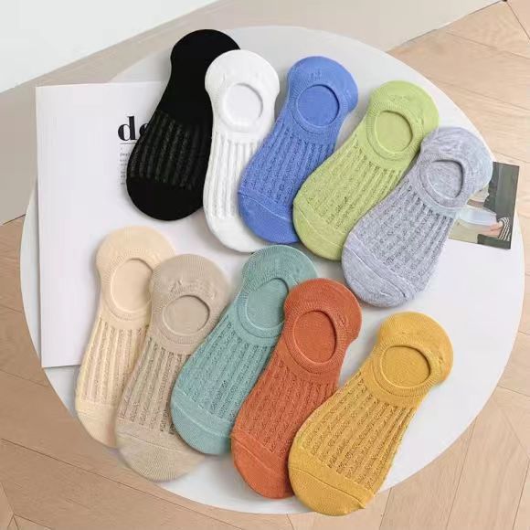 袜子女春夏浅口隐形棉袜薄款洞洞袜网眼船袜不掉跟简约百搭空调袜