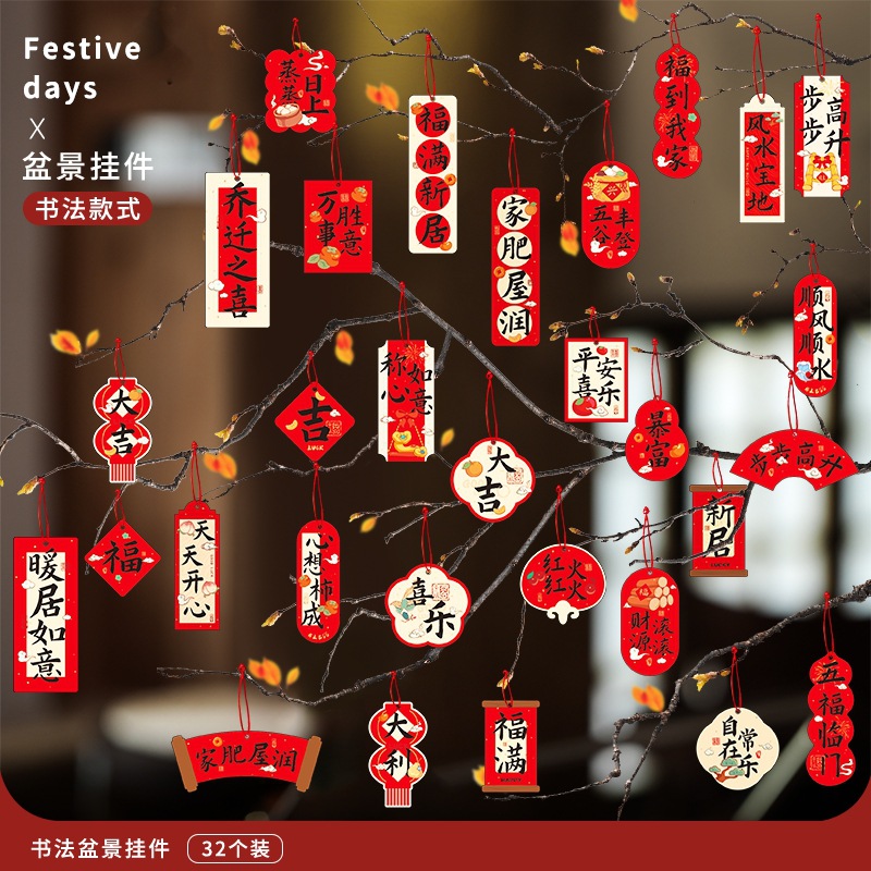 2026乔迁小挂件搬家盆景挂饰喜迁新居入宅发财树上小灯笼布置挂饰
