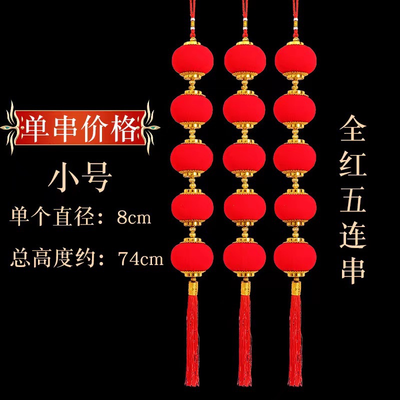 大红植绒小灯笼串挂饰春节场景布置植绒小灯笼串商场新年装饰挂件
