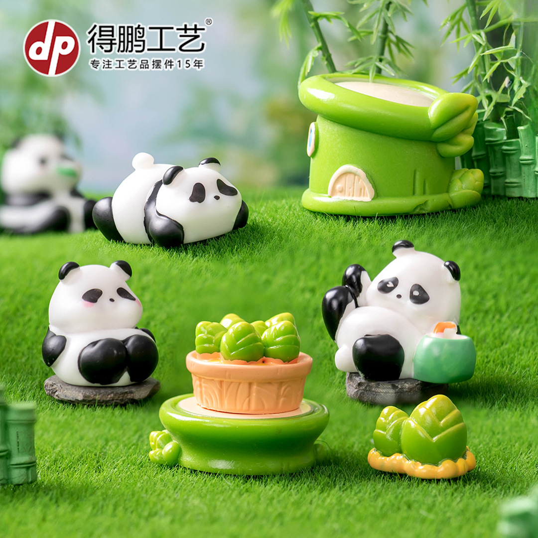微景观创意田园小熊猫公仔春笋竹房子摆件DIY装饰品配件桌面摆件