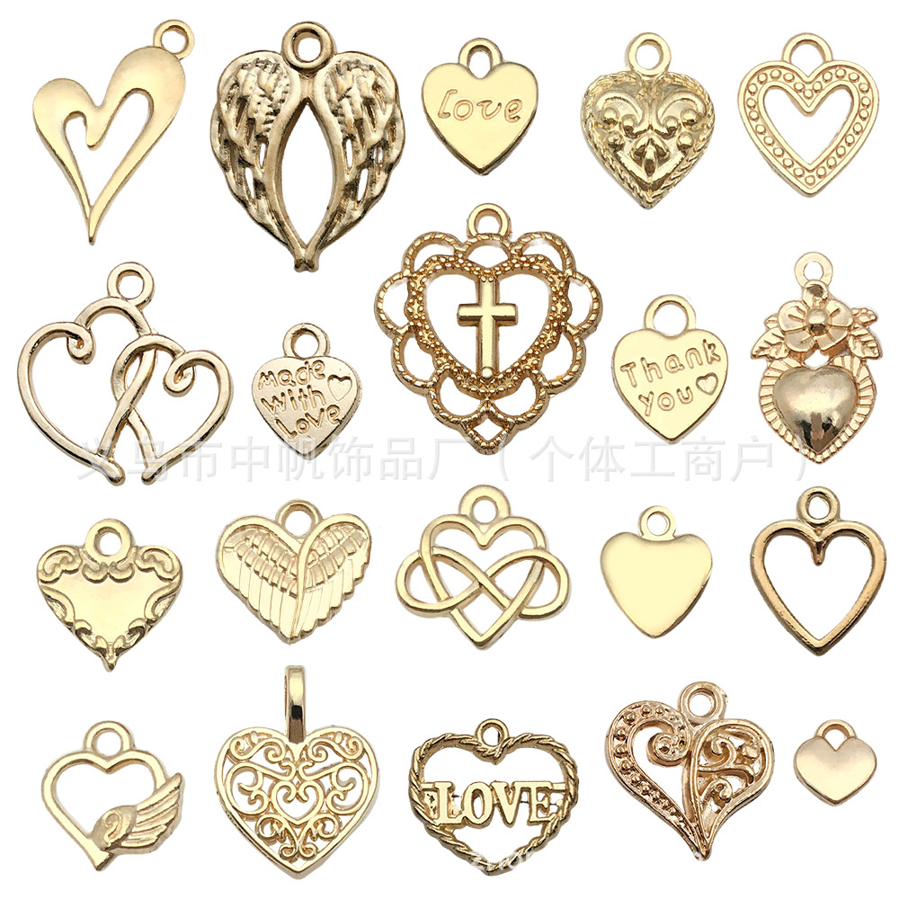 混20个KC金镂空爱心字母LOVE小吊坠 DIY手链项链饰品挂件批发