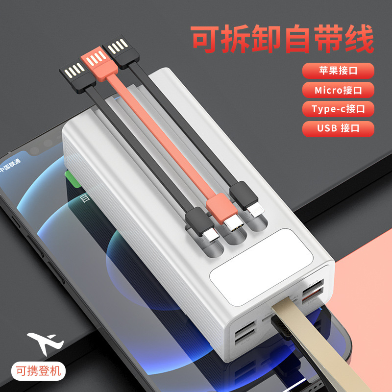 跨境可拆卸自带线充电宝50000毫安数显双快充大容量移动电源定 制