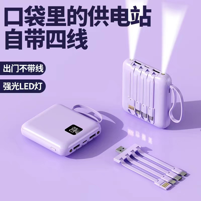 充电宝20000毫安迷你小巧便携大容量可拆卸自带四线移动电源印制