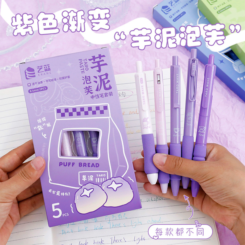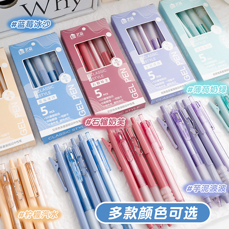 艺蓝小清新中性笔套装学生软握笔0.5mm黑色笔马卡龙系列刷题笔