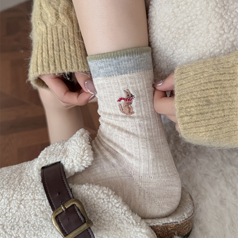 日系双针卡通袜子女春秋款美拉德堆堆袜ins潮中筒袜配勃肯鞋长袜