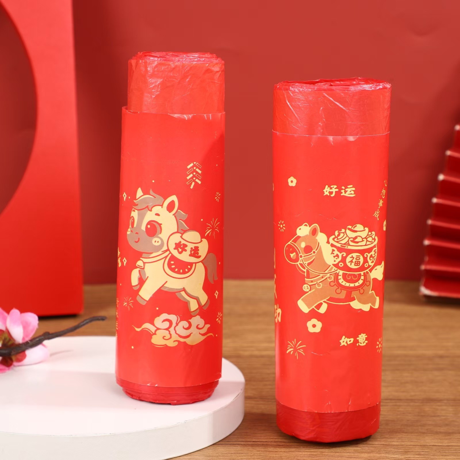 马年垃圾袋马上发财、有钱中国红免撕抽绳垃圾袋加厚手提家用自动