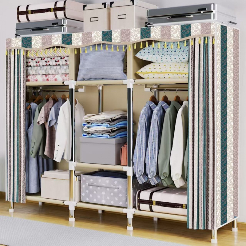 简易衣柜家用卧室钢管钢架加固组装出租房加厚耐用收纳落地布衣橱