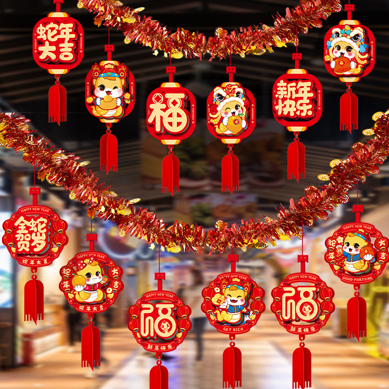 2025新年元旦拉花蛇年生肖福挂饰春节过年立体吊饰拉旗布置装饰